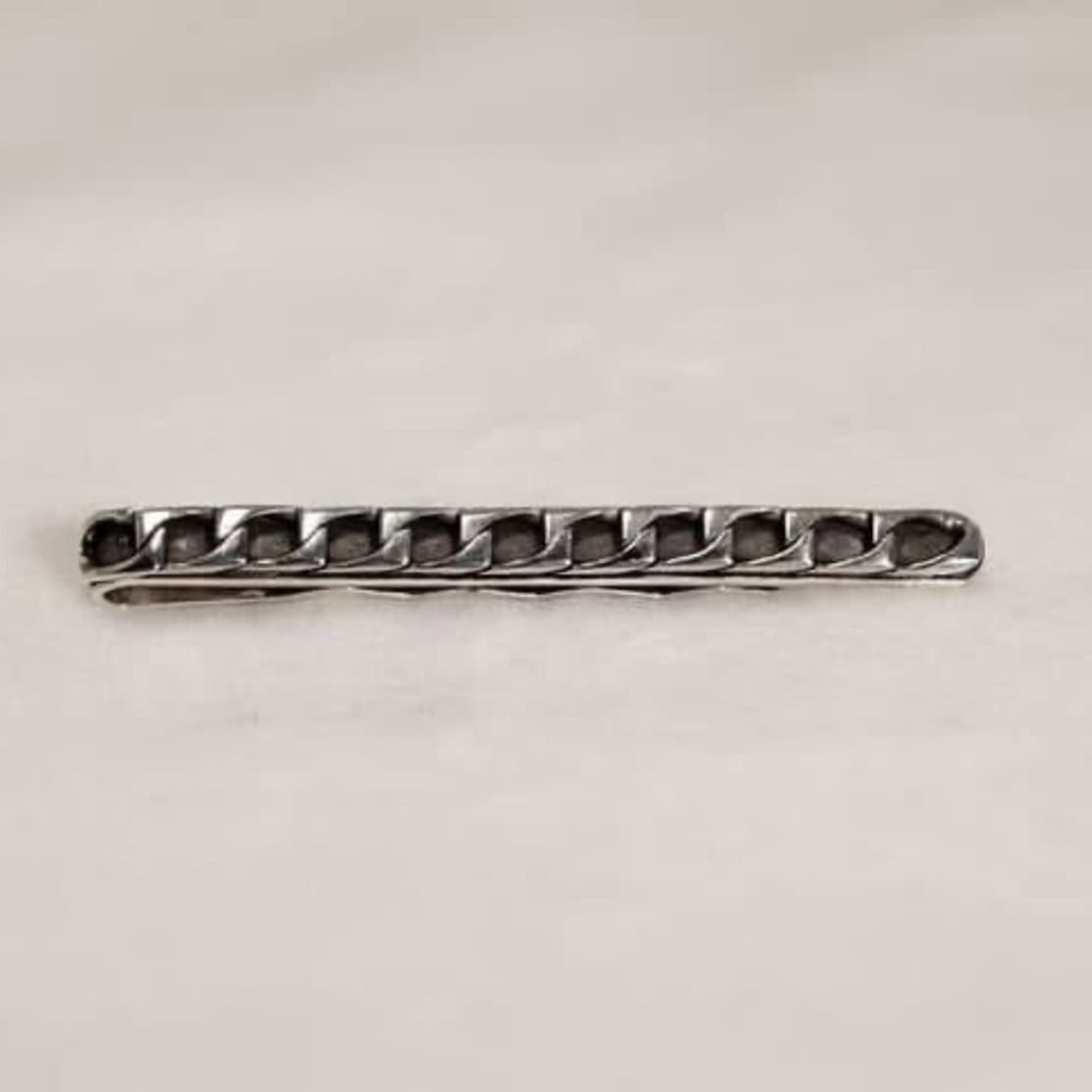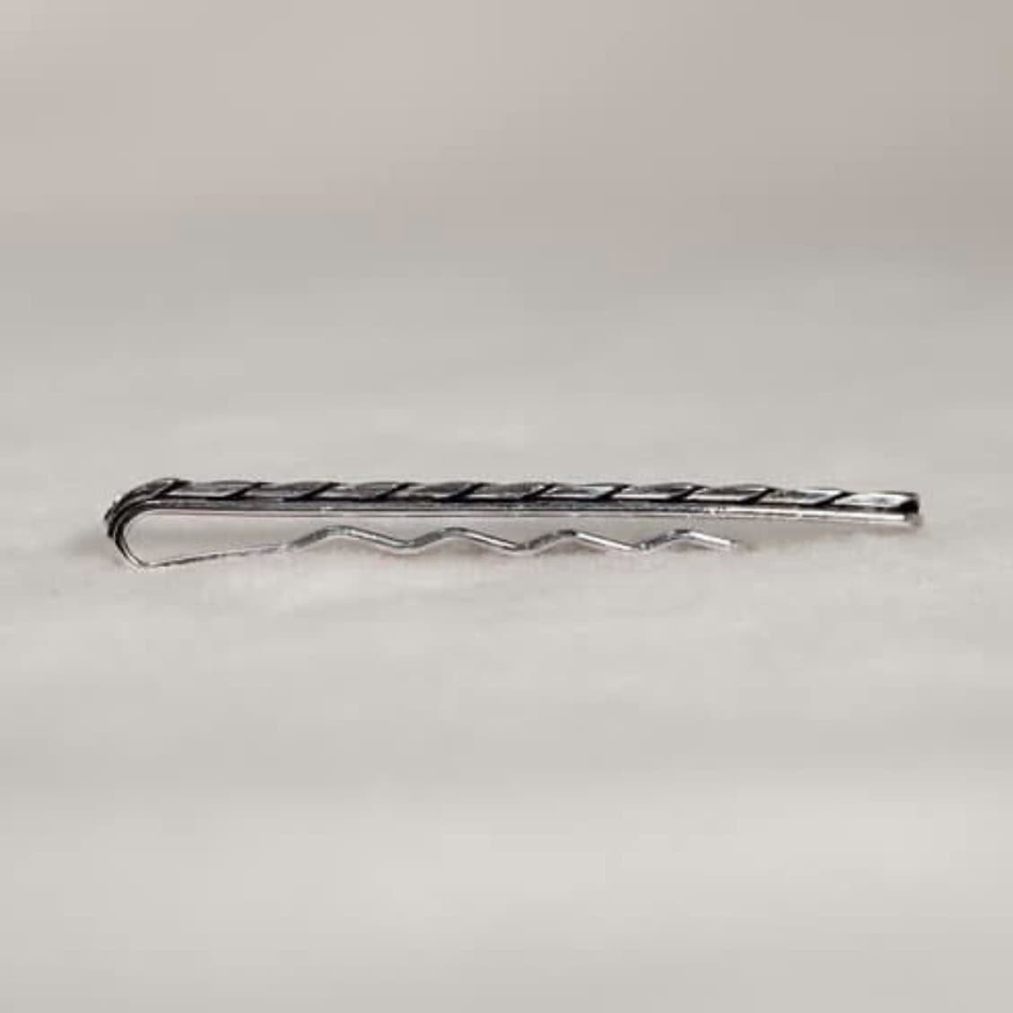 Zilveren dasschuif hoogglans afgewerkt dieper gelegen deel gezwart.