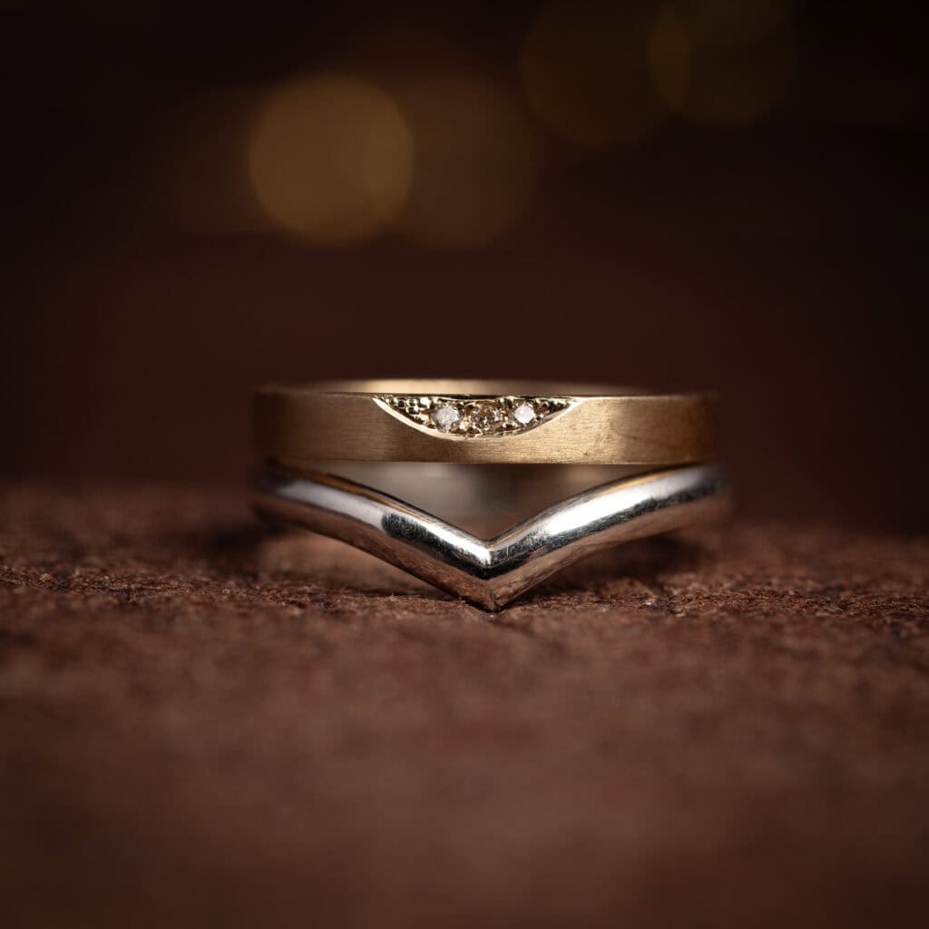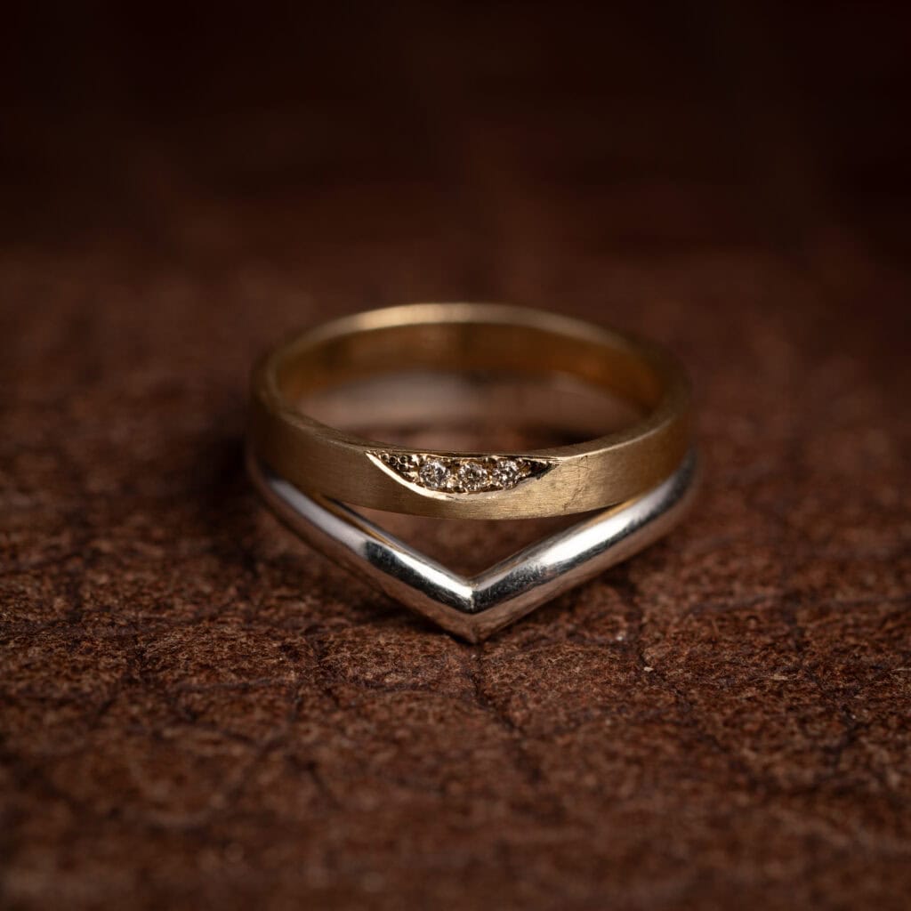 De natuurlijke diamantjes zijn op een schuin vlak gezet en geven net dat beetje extra sparkle aan de ring.