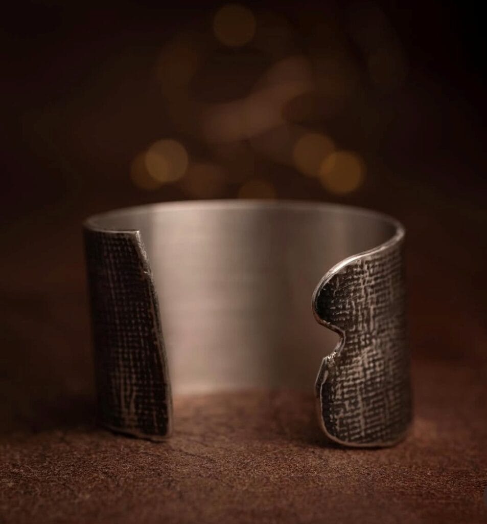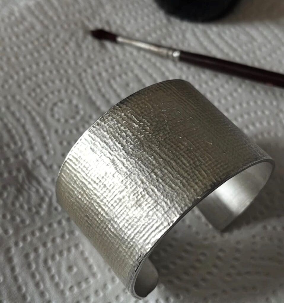 29/03/2026Armband breedGezwartLiefdeLinnenstructuurOrganischZilverZilver bewerkt “Zilveren armband met linnenstructuur” Omgesmolten zilver In een nieuw jasje. share